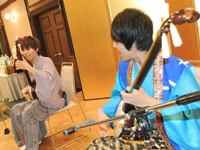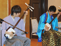 | ■津軽三味線奏者 杉山大祐氏(左)、山口晃司氏(右)による「津軽じょんがら節」の演奏 |