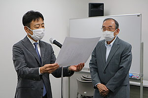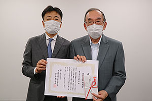 谷水議長と橋野理事長 |